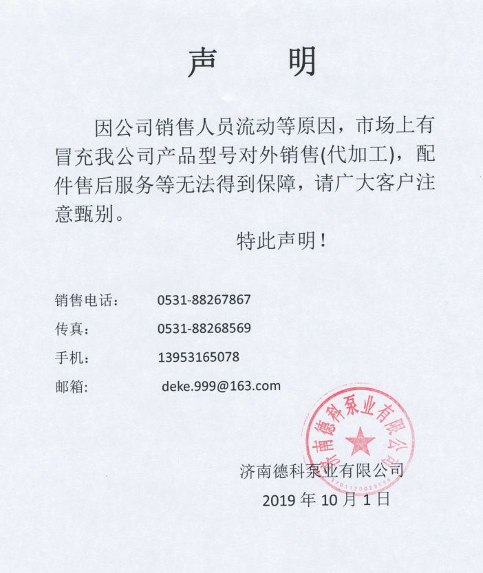 濟(jì)南德科泵業(yè)有限公司聲明
