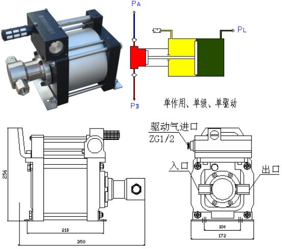 德科泵采用大氣體活塞與小直徑液壓柱塞連接在一起的結(jié)構(gòu)。利用兩個(gè)活塞的面積比產(chǎn)生壓力比,通過(guò)壓力比可以計(jì)算出最大輸出壓力。高壓力比產(chǎn)生很高的出口壓力。 型號(hào)中的數(shù)字為該型號(hào)產(chǎn)品的額定壓力比。而技術(shù)參數(shù)則表明液泵的實(shí)際壓力比。 通過(guò)一個(gè)簡(jiǎn)單的氣體減壓閥可以設(shè)定出口壓力。 壓力比*氣體驅(qū)動(dòng)壓力=輸出壓力